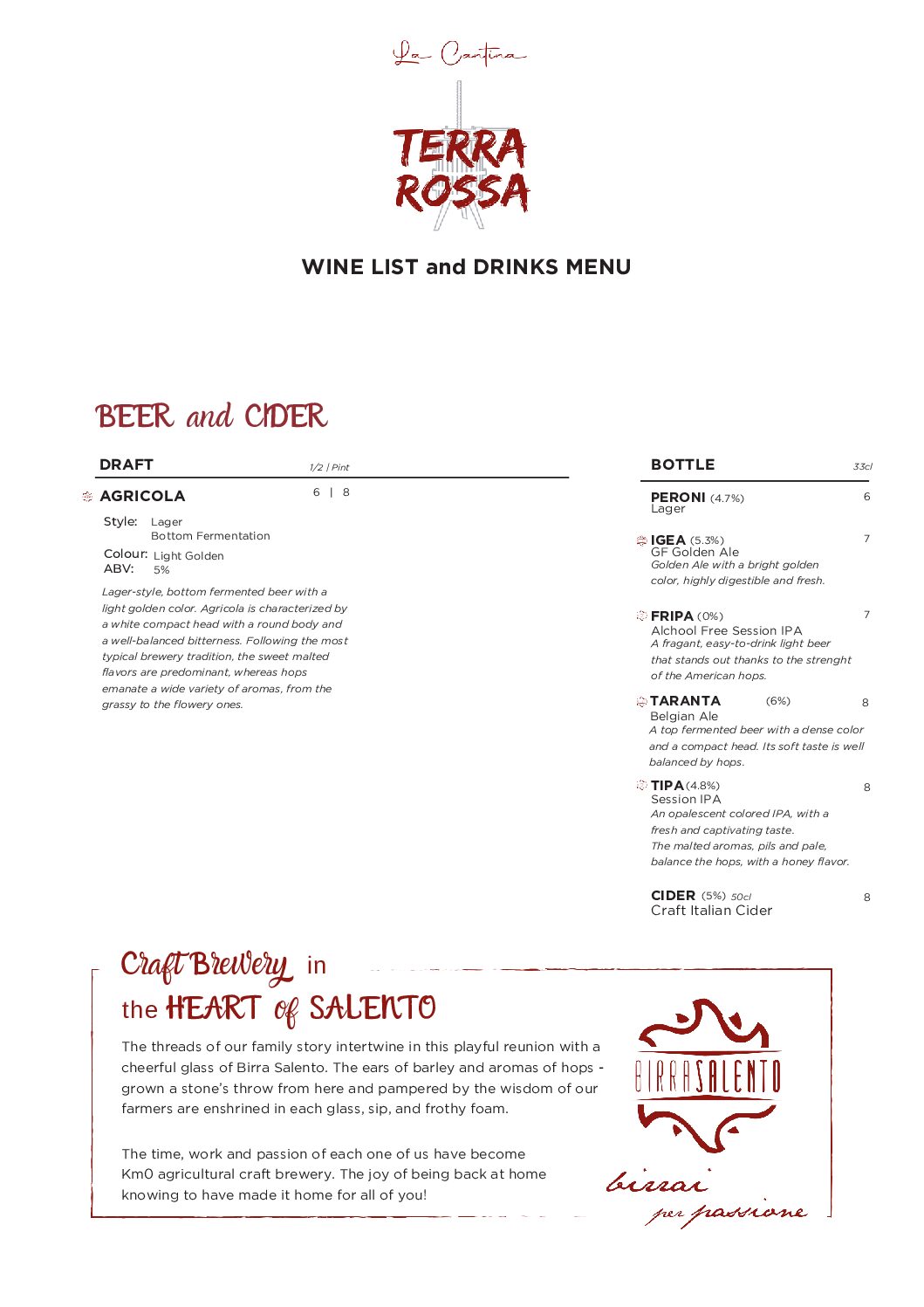 At Terra Rossa La Cantina, we celebrate authentic Apulian cuisine, inspired by the rich culinary traditions of Southern Italy. Our menu features classic Italian antipasti, handmade pasta, stone-baked pizzas, and secondi dishes, all prepared with fresh, high-quality ingredients and bursting with flavour.